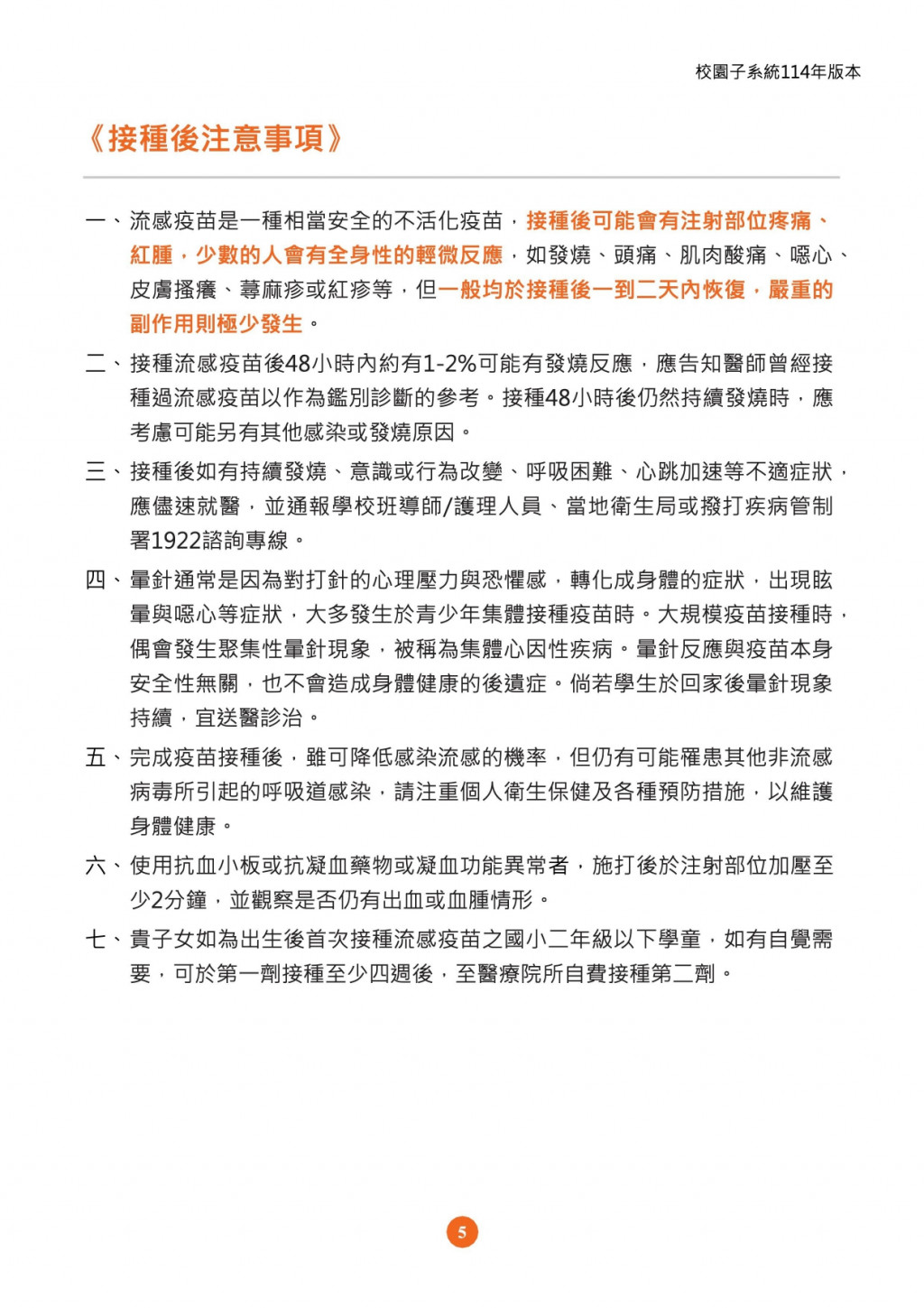 四、如截止期限後想修改接種意願或需紙本簽署,請洽各校學校人員